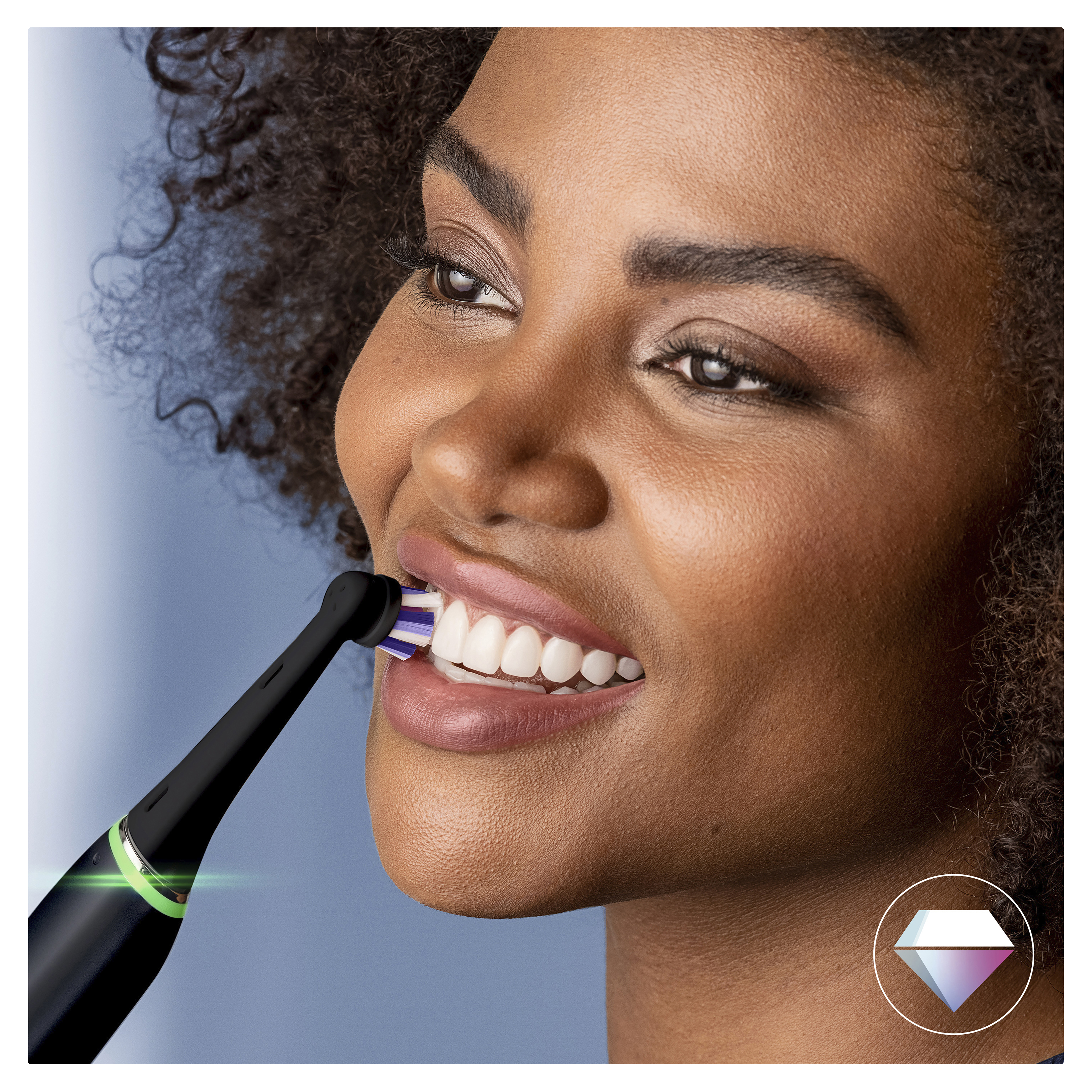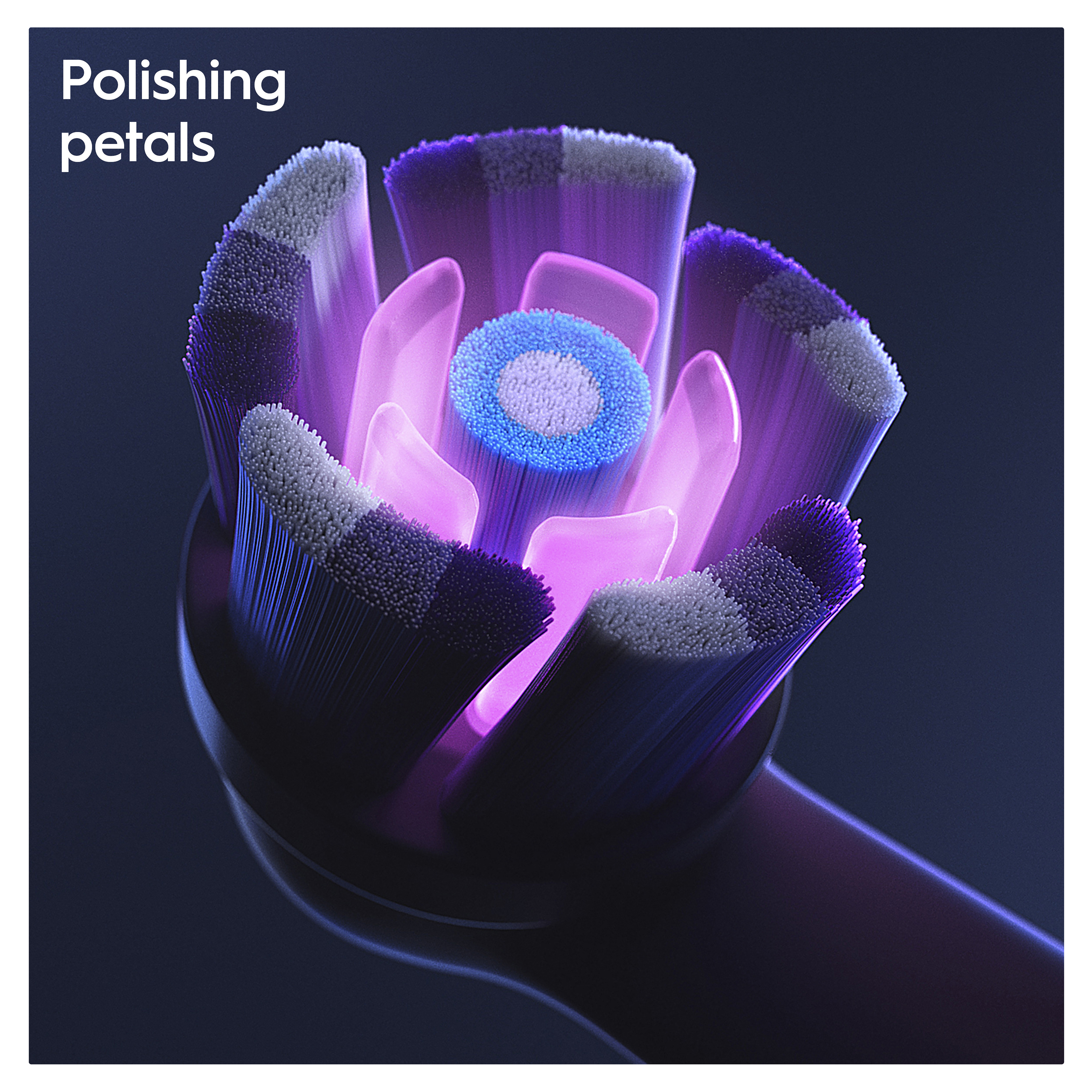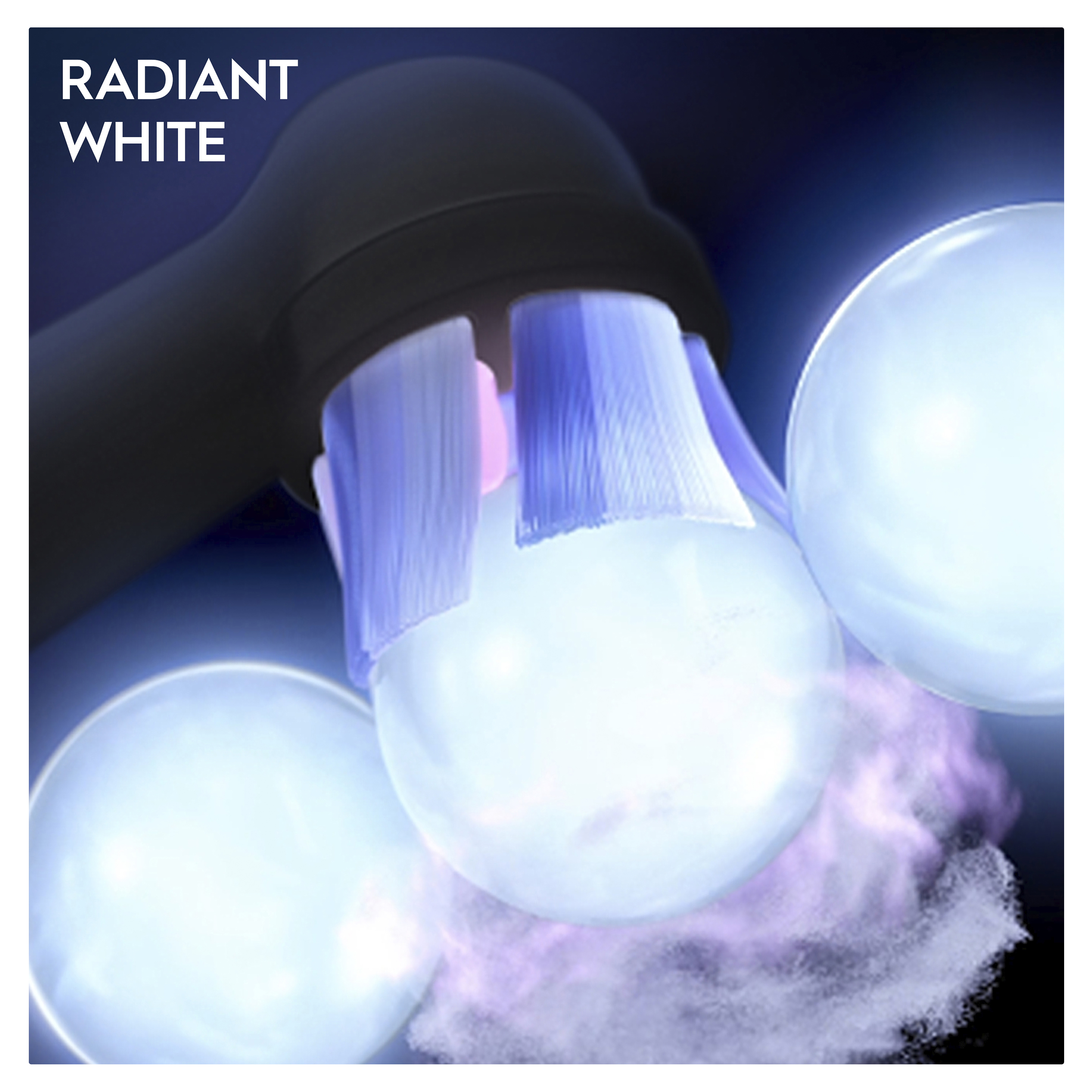 The Oral B io series combines powerful, but gentle micro-vibrations with Oral B’s unique dentist-inspired round brush head design for a professional clean feeling every day. Radiant White Refills help whiten teeth starting from day 1* *by removing surface stains. Precisely angled bristles lift and remove plaque. Dentists recommend changing your toothbrush head every 3 months for best results.