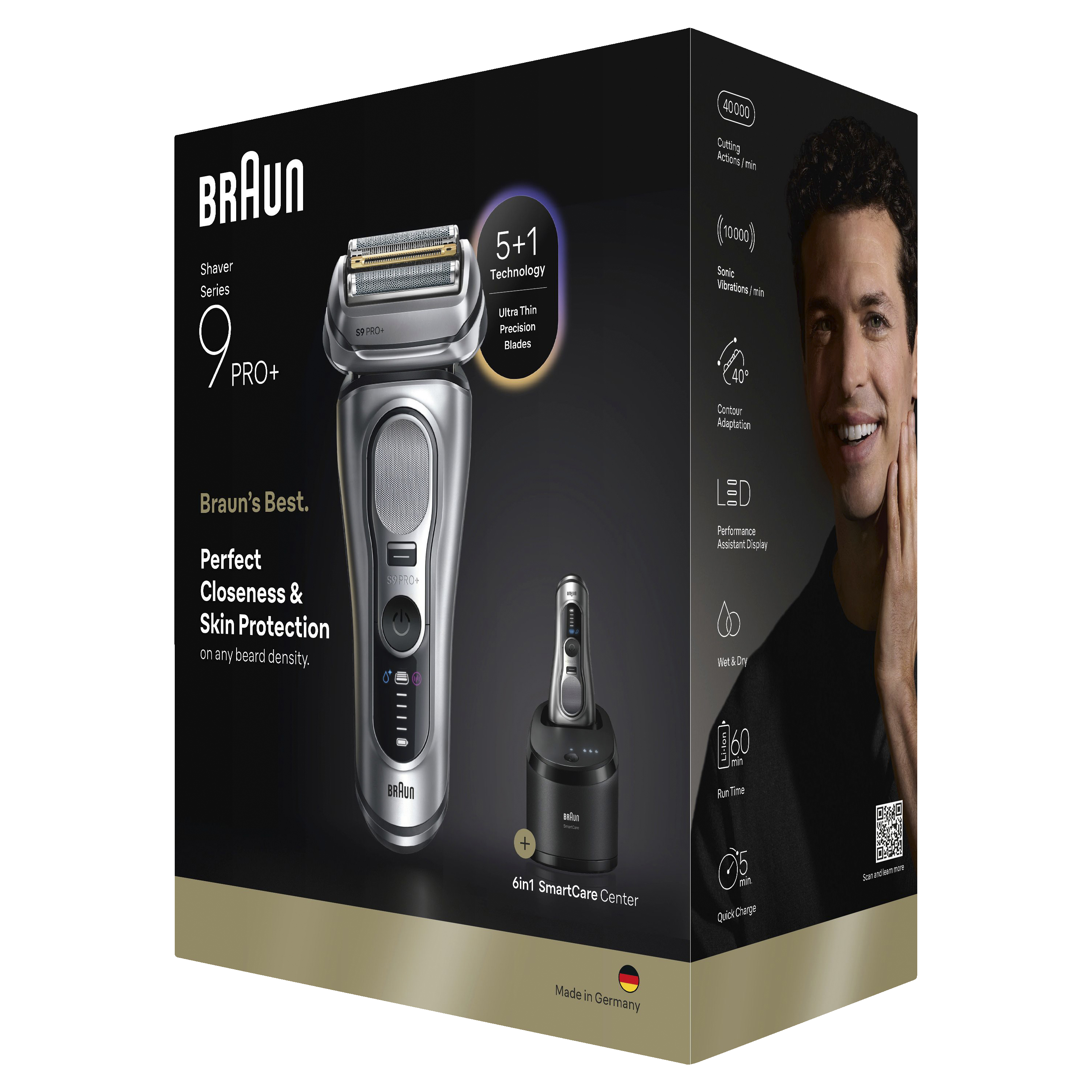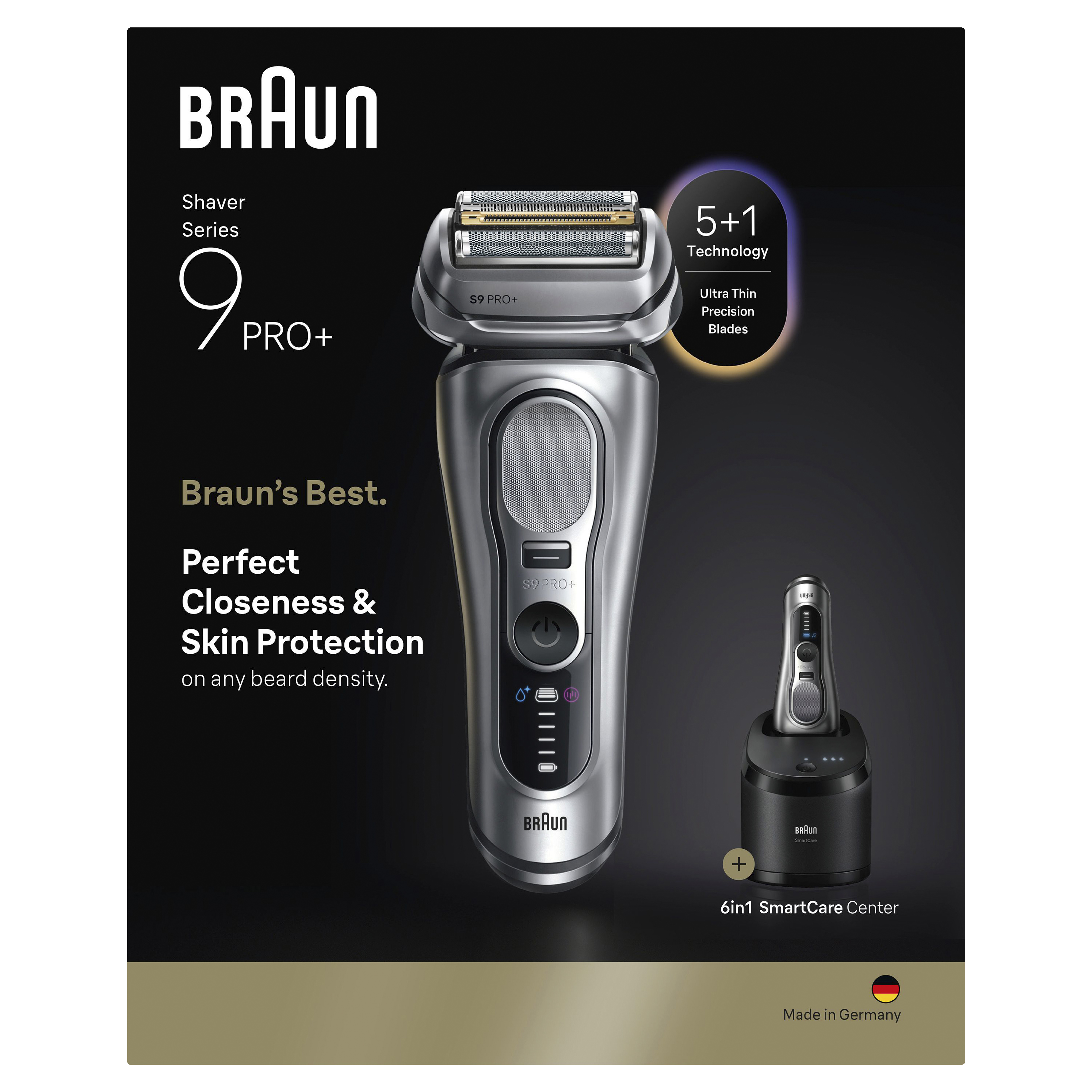 Series 9 PRO+ electric razor for men is made from high-quality materials with the highest attention to detail and tested to be long-lasting. 100% waterproof for Wet & Dry use.